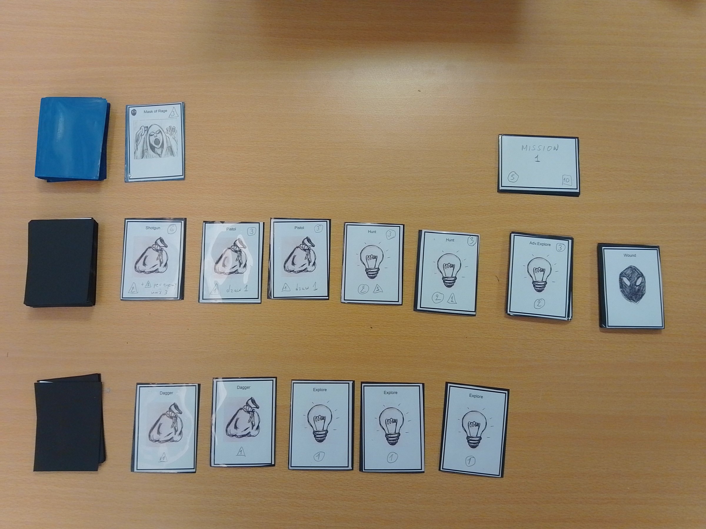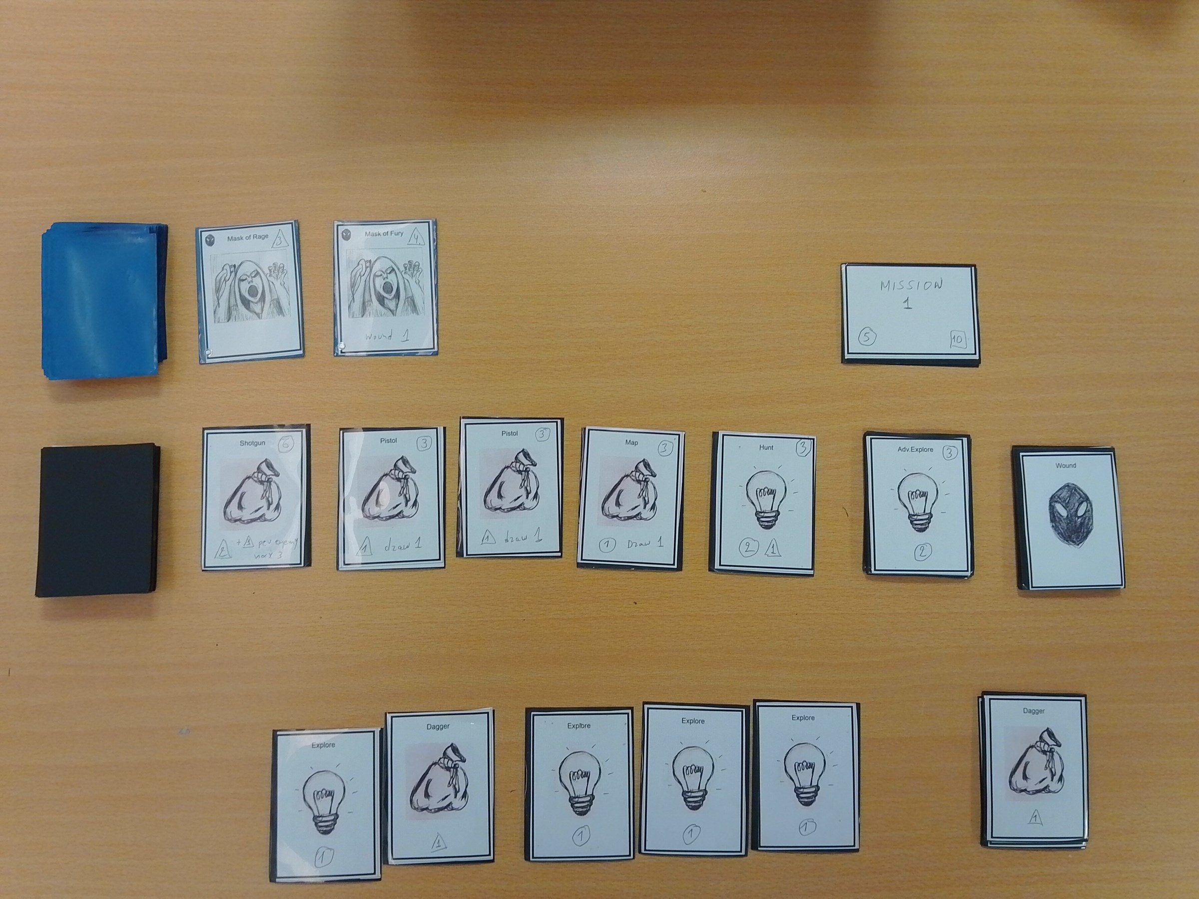 An adventure deckbuilding game where you try to complete missions that allow you to defeat the Lord of Masks and his mask minions